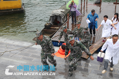 中國水利網(wǎng)站6月16日訊 (通訊員 金廷舉)6月15日,重慶市秀山土家族苗族縣政府應(yīng)急辦、縣人武裝部、縣水務(wù)局、縣國土局、縣民政局、縣氣象局和各鄉(xiāng)鎮(zhèn)近300人在大溪鄉(xiāng)開展防汛防山洪災(zāi)害應(yīng)急搶險(xiǎn)演練?h委常委、縣人武部政委王傳高,縣政府副縣長、縣防汛抗旱指揮長王兵觀摩演練。