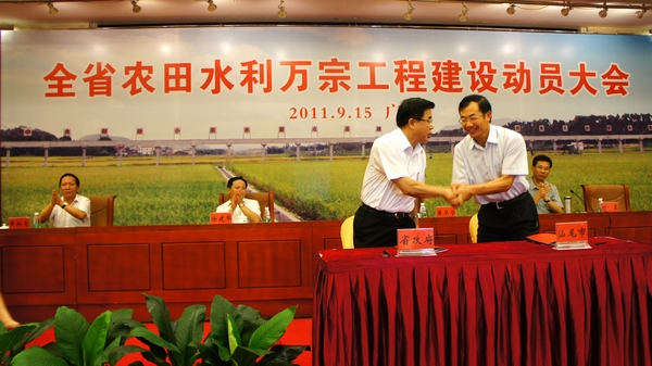 黃華華省長(zhǎng)與20個(gè)地級(jí)以上市和順德區(qū)簽訂了農(nóng)田水利工程建設(shè)責(zé)任書(shū)