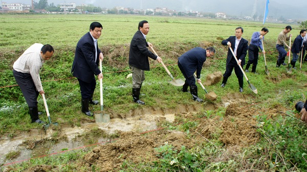 紀(jì)念大會后,300多名與會代表參加清新縣農(nóng)田水利建設(shè)義務(wù)勞動。