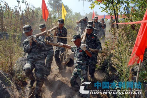 獨(dú)山縣抗旱指揮部提出“全力奮戰(zhàn)80天確?h城供水”目標(biāo)。圖為貴州省軍區(qū)預(yù)師二團(tuán)參加縣城供水?dāng)U建工程勞動(dòng)