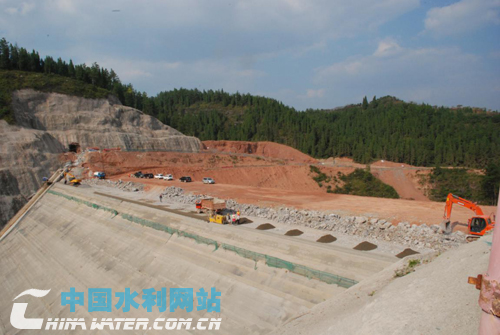 正在搶抓水利建設(shè)黃金期加快壩頂填筑工程的余慶縣魁龍水庫