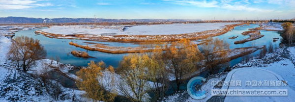 雪后晴日,沁河沁陽市段蜿蜒緩緩流淌,與兩岸白雪相互映襯,構(gòu)成一幅美麗雪河畫卷。沁河是黃河重要支流,自北向南流經(jīng)山西高原的沁源縣、安澤縣等地,至濟源市五龍口出山后,流入平原,東流經(jīng)沁陽市、博愛縣、溫縣,在武陟縣城南方陵村注入黃河。河南省焦作市沁陽市所轄沁河起始于沁河出山口下游10公里,河道長35.134公里,平均寬1000米,屬游蕩型河道,區(qū)內(nèi)有安全河、逍遙河、丹河等支流匯入。