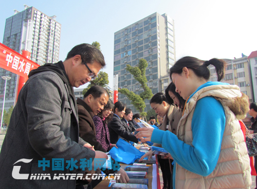 “您好,請節(jié)約用水!惫ぷ魅藛T一邊向過往的市民分發(fā)《水法》、《水土保持法》等宣傳資料,一邊提醒市民節(jié)約用水,進一步提高廣大市民對水和水利的認識,號召全社會都來關(guān)心水、保護水、愛惜水、節(jié)約水,形成學法、懂法、守法、用法的良好社會氛圍。
