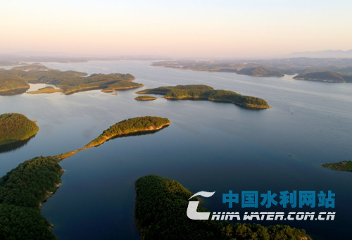 站在碧水連天的觀光平臺,天藍水清,湖中小島,形態(tài)各異,且錯落有致。