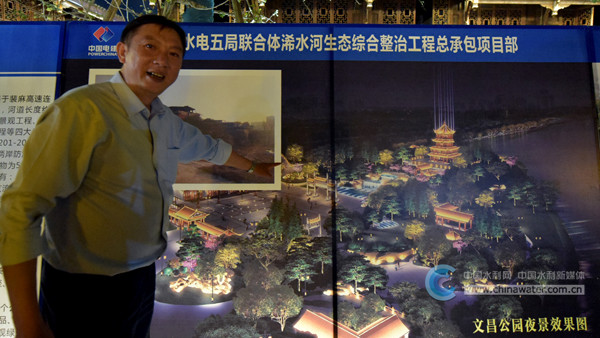 浠水河生態(tài)綜合整治工程項(xiàng)目部副經(jīng)理李鐵永介紹工程建設(shè)情況