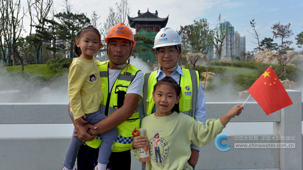 工程建設(shè)者之一李學(xué)昆夫妻帶著孩子在文昌公園歡度國慶節(jié)