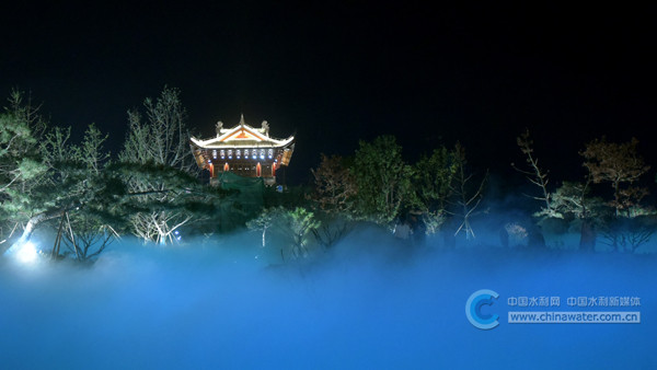 浠水河生態(tài)綜合整治工程之一文昌公園夜景營造出天上人間的迷人景像