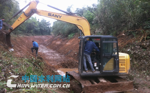 在干渠施工現(xiàn)場(chǎng),記者看到,干渠四周的雜草已經(jīng)全部砍除,部分淤泥清除工程已完成,大型挖土機(jī)正在對(duì)北干渠大界村段渠道進(jìn)行整形,盡管連日來(lái)湘東地區(qū)陰雨綿綿,但經(jīng)過整形的1000多米渠道沒有停止向丘陵深處延伸。