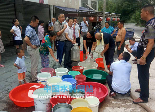 在一路前行的過程中,記者一行“偶遇”鄉(xiāng)政府組織的抗旱送水車正在為三家館鄉(xiāng)毛頭關村的村民們送水,村民們將一個個從家里提來的水桶整齊放好,等待工作人員放水。