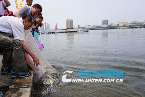 中國(guó)水利網(wǎng)站6月8日訊(記者 邊境)6月6日上午,在松花江吉林市區(qū)段,數(shù)百名市民在工作人員的組織下,將一盆盆撲打著尾巴的魚苗“送入”江水,魚苗迅速游向遠(yuǎn)方。