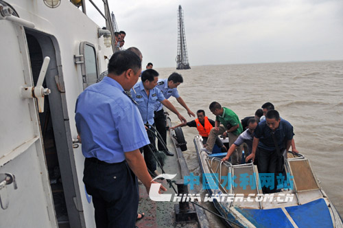 洪澤縣水利局、公安局、海事處、水產(chǎn)局等部門湖泊管理工作人員,8月8日上午在洪澤湖洪澤縣水域聯(lián)合巡查時,發(fā)現(xiàn)9號標、10號標附近還有部分船民滯留在船上。此時風浪已逐步增大,因為洪澤湖水位低搜救艇無法靠近船邊,最后通過快艇轉(zhuǎn)送5次,用時3個多小時,終于把18名滯留湖區(qū)的船民轉(zhuǎn)移到陸地安全地帶。