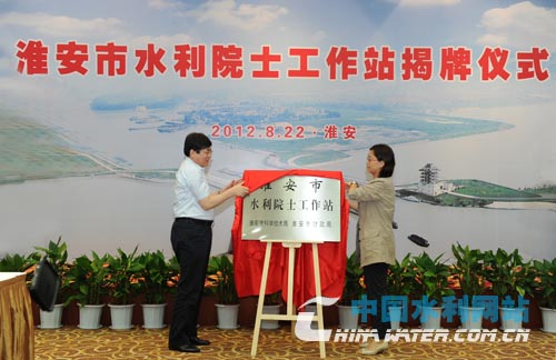 儀式上,練月琴與朱躍龍共同為淮安市水利院士工作站揭牌。
