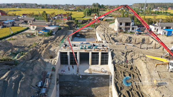 老通揚運河東部片區(qū)水生態(tài)治理工程調(diào)水泵站澆筑場景