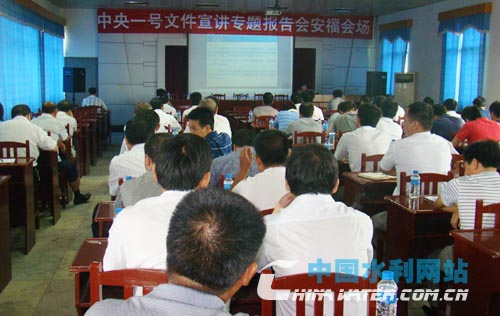 中國水利網(wǎng)站訊 近日,由江西吉安市委宣傳部、農(nóng)工部、市水利局組成的2011年中央一號(hào)文件宣講團(tuán)到安福宣講,縣防汛抗旱指揮部成員單位和農(nóng)田水利基本建設(shè)領(lǐng)導(dǎo)小組成員、各鄉(xiāng)鎮(zhèn)分管領(lǐng)導(dǎo)、水管單位班子成員、局機(jī)關(guān)全體干部職工等160余人在縣委黨校會(huì)場(chǎng)聆聽了專題報(bào)告。