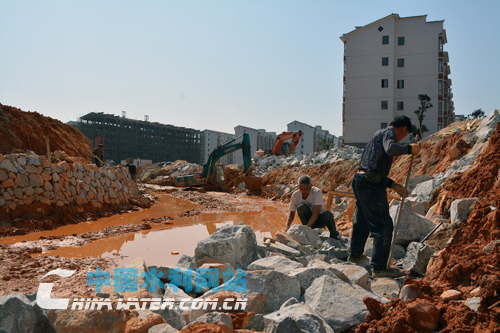 金溪縣高坊灌區(qū)西干渠除險加固施工現(xiàn)場