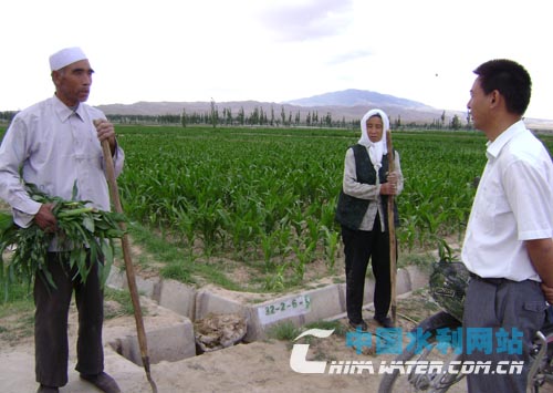 “可不,你看,我這玉米苗壯葉子肥,長得喜人,秋后肯定有個好收成!瘪R大爺聽到有人夸贊他的玉米長勢時,爬滿皺紋的臉立馬笑開了花,隨后又轉(zhuǎn)身指著不遠(yuǎn)處的渠子滿懷感激地說道“可這多虧了這渠水啊,沒水就啥也沒有”。筆者沿著馬大爺?shù)氖种阜较蛲,一條斗渠自南向北延伸,渠里水流歡快急匆,兩邊的莊稼一片墨綠。