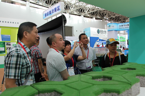 除了節(jié)水技術,城市排水防澇與雨資源化利用技術也是本屆展會的一大亮點。作為北京仁創(chuàng)生態(tài)環(huán)保科技有限公司核心產品之一的“透水磚”,透水速率是目前世界上最領先之一,每小時能透2.45米的水,廣泛應用于小區(qū)、廣場 、道路等場地。