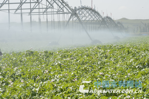 大型時針式噴灌機(jī)在進(jìn)行水、藥、肥一體化作業(yè)