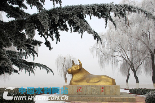 劉春家景區(qū)冬日下的鎮(zhèn)河鐵牛