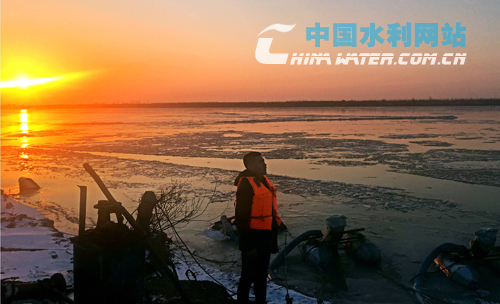 防凌觀測員清晨觀測河道冰凌