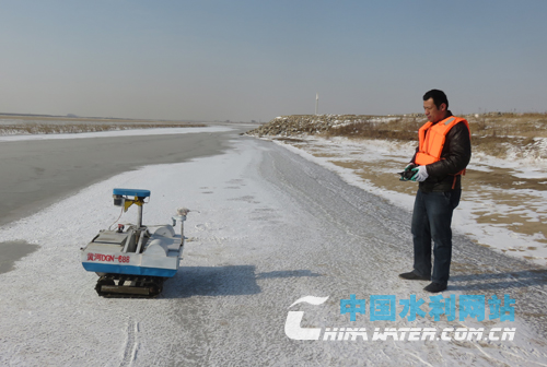 河口黃河河務(wù)局嚴(yán)格執(zhí)行防凌二十四小時(shí)值班觀測制度,防凌觀測員三人為一組,配備救生衣、救生繩、手電、觀測記錄簿等,每天最少對(duì)管轄河段全程觀測兩遍以上,為確觀測保數(shù)據(jù)準(zhǔn)確性,該局還利用自主研發(fā)的“防凌防汛無人探測車”進(jìn)行輔助觀測。