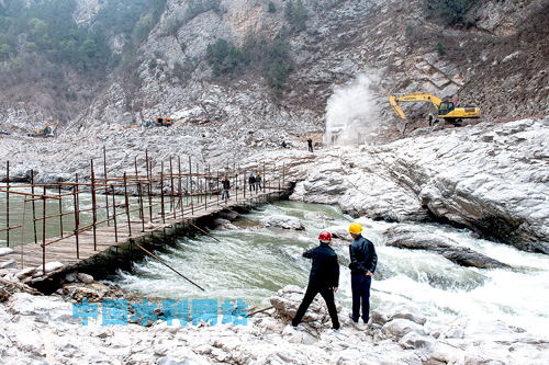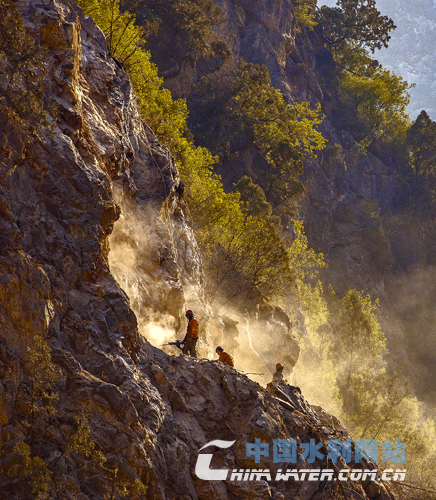 日前,記者來到東莊水利樞紐導(dǎo)流勘探洞施工現(xiàn)場,切身感受了火熱的建設(shè)場面。沿著盤旋的進場道路一路下行到達峽谷底端的導(dǎo)流勘探洞施工現(xiàn)場,一座施工橋梁已經(jīng)架設(shè)在河道之上,數(shù)十輛工程車穿梭在曲折的山路上拉運渣石,一派繁忙景象。工人們頭戴安全帽,緊張地在勘探洞開挖現(xiàn)場施工。據(jù)導(dǎo)流勘探洞項目總監(jiān)理工程師王耀利說,他參建過很多工程,從來沒遇到這么艱難的施工環(huán)境。工人實行“三班倒”作業(yè),24小時晝夜施工,趕進度保工期。從淳化縣車塢鄉(xiāng)下到規(guī)劃中的東莊水庫大壩壩址,狹窄的谷底車來車往,一片沸騰,工人們有的在整修施工道路,有的在拉運設(shè)備,有的在陡峭的山坡上清理坡面,準備開始導(dǎo)流洞進口施工。舉目仰望,峽谷兩邊壁立千仞,只有正午的時候才能透進陽光。