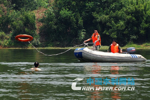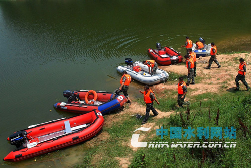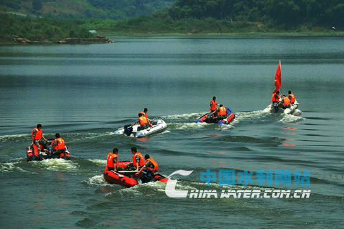 中國水利網(wǎng)站6月25日訊(記者 蘇冠群 李志杰 通訊員 賈媛媛)6月24日上午9時,四川省雙流縣防汛指揮部辦公室通過防汛信息平臺突然向縣防汛機動搶險隊發(fā)出快速集結(jié)實戰(zhàn)演練的指令。機動搶險隊的5支小分隊接到指令后,立即攜帶橡皮艇及相關(guān)設(shè)施趕赴演練現(xiàn)場——永安水庫。搶險隊集結(jié)快速,行動果斷。隊列演練時5艘橡皮艇激起的浪花,在湖面上劃出一條壯觀美麗的弧線。特別是在搶先救人環(huán)節(jié),四艘橡皮艇迅速靠近2名模擬落水者,準確拋出救生圈,快速使落水者成功“獲救”。
