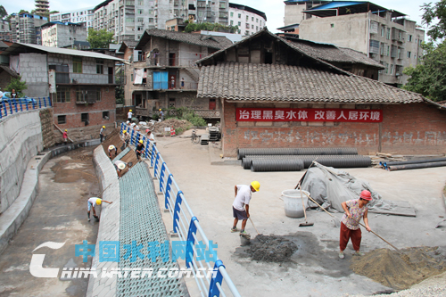恩陽區(qū)蘆墟溝黑臭水體治理現(xiàn)場(chǎng)