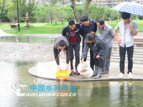 當(dāng)?shù)厝罕妵^魚苗放流活動(dòng)