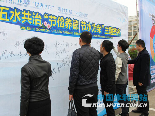 活動(dòng)現(xiàn)場(chǎng)工作人員向過往群眾發(fā)放《水法律法規(guī)匯編》、《山洪災(zāi)害防御常識(shí)》、《水資源保護(hù)小貼士》等相關(guān)資料2000多份,號(hào)召市民共同參與“五水共治”活動(dòng),共建美麗瑞安,F(xiàn)場(chǎng)還開展了“五水共治,節(jié)儉養(yǎng)德、節(jié)水為榮”主題簽名活動(dòng),動(dòng)員全民參與“五水共治”,共同建設(shè)美麗瑞安。在高樓鎮(zhèn)活動(dòng)現(xiàn)場(chǎng),宣傳臺(tái)前圍滿了填寫《水知識(shí)有獎(jiǎng)問卷》的市民,遇到不會(huì)的問題,市民可以在展示的10余個(gè)宣傳展板上尋找答案;在宣傳臺(tái)的另一邊,許多市民自發(fā)在節(jié)水主題簽名墻上簽下自己的名字。