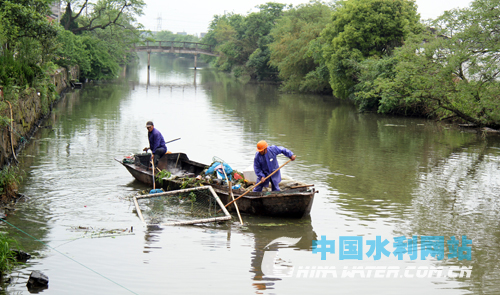 中國水利網站4月26日訊 (通訊員 梁敏慧 蔣思軍)日前,浙江省臺州市路橋區(qū)金清鎮(zhèn)2名河道保潔員劃著小船在三條河對河面上的漂浮垃圾進行清理,所過之處,留下的是明凈水面,這樣的畫面,引起了大眾的關注。這是臺州市“五水共治”工程一個新的舉措,創(chuàng)新保潔機制,維持河道動態(tài)潔凈,推進人水和諧。
