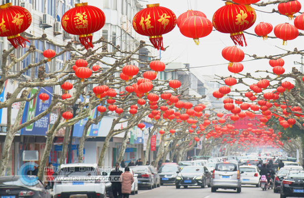 金清鎮(zhèn)徐家河邊上的人民路大紅燈籠迎元宵節(jié)