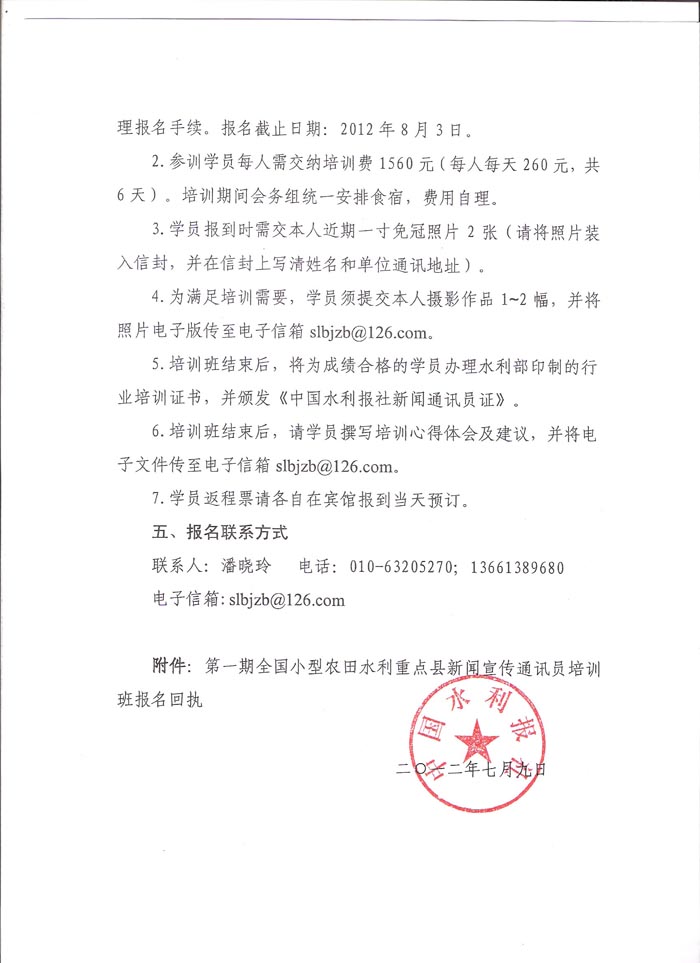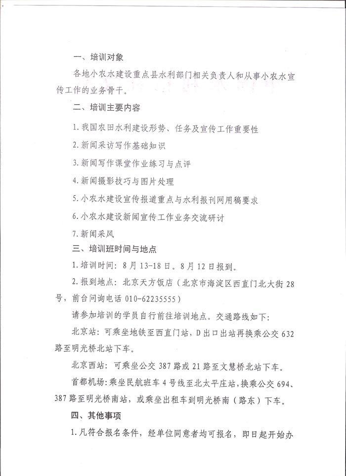 關(guān)于舉辦第一期全國(guó)小型農(nóng)田水利重點(diǎn)縣新聞宣傳通訊員培訓(xùn)班的通知