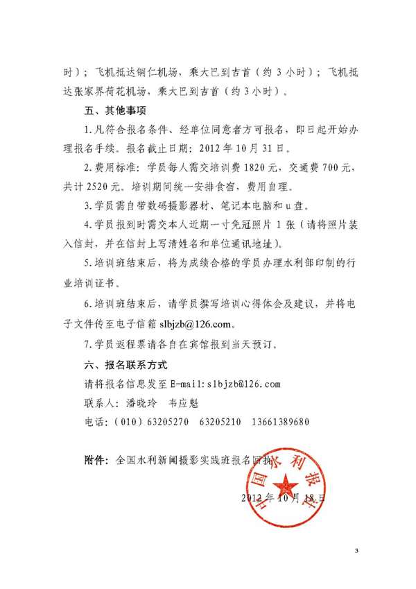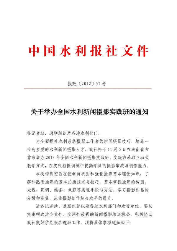 關(guān)于舉辦全國(guó)水利新聞攝影實(shí)踐班的通知