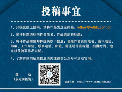 本次作品征集截至9月15日。投稿者可以按征集主題,將作品發(fā)送至活動(dòng)指定郵箱。從目前征集到的作品來看,反映永定河人文歷史類的老照片、資料照片比較稀缺,投稿者可以多加關(guān)注,反映生物多樣性和幸福新生活的作品也可以加大投稿。