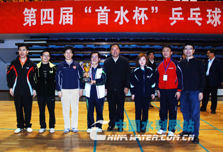 中國(guó)水利網(wǎng)站11月14日訊(記者 王健康 賈君洋)由21世紀(jì)初期首都水資源可持續(xù)利用協(xié)調(diào)小組辦公室、水利部直屬機(jī)關(guān)黨委和工會(huì)聯(lián)合舉辦的第四屆“首水杯”乒乓球邀請(qǐng)賽今日上午在北京廣安體育館開(kāi)賽。水利部部長(zhǎng)陳雷出席開(kāi)幕式并宣布比賽開(kāi)始。水利部副部長(zhǎng)周英,水利部副部長(zhǎng)、21世紀(jì)初期首都水資源可持續(xù)利用協(xié)調(diào)小組組長(zhǎng)胡四一共同為獲勝代表隊(duì)頒獎(jiǎng)。胡四一在開(kāi)幕式上講話。
