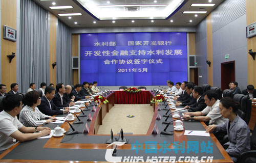 水利部、國家開發(fā)銀行有關(guān)司局和單位負(fù)責(zé)人出席簽字儀式。