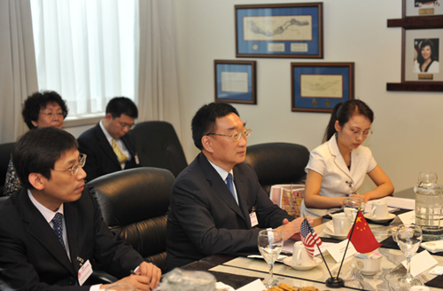 陳雷指出,在目前全球旱澇災(zāi)害頻發(fā),氣候變化對(duì)水資源影響日益顯現(xiàn),水資源管理面臨多重挑戰(zhàn)的情況下,中美兩國(guó)水資源主管部門之間的合作潛力很大。他希望此次訪問能進(jìn)一步增進(jìn)中美友誼與合作,推動(dòng)雙方在防洪減災(zāi)、氣候變化對(duì)策研究、水生態(tài)修復(fù)和水利科研等領(lǐng)域的交流,促進(jìn)技術(shù)和經(jīng)驗(yàn)共享,推動(dòng)互惠互利合作。陳雷就雙邊合作提出了三個(gè)方面的建議:一是繼續(xù)推動(dòng)雙方高層互訪,不斷提高雙方合作水平。中國(guó)水利部希望與美國(guó)水資源主管部門在未來開展更加密切的交流合作,繼續(xù)推動(dòng)雙方高層互訪,就治水技術(shù)和理念開展對(duì)話和交流。二是加強(qiáng)雙方在世界水論壇等國(guó)際水事活動(dòng)中的合作。希望今后在其他一些國(guó)際會(huì)議上,特別是第六屆世界水論壇期間繼續(xù)加強(qiáng)合作,協(xié)調(diào)彼此立場(chǎng),共同為應(yīng)對(duì)全球水資源領(lǐng)域的挑戰(zhàn)做出貢獻(xiàn)。三是邀請(qǐng)美方代表參加在華舉辦的國(guó)際會(huì)議,并實(shí)地考察長(zhǎng)江三峽、黃河小浪底和南水北調(diào)等大型水利水電工程。陳雷表示,通過今天的訪問,雙方進(jìn)一步加深了相互了解,增進(jìn)了雙邊友誼,在雙方共同努力下,中美兩國(guó)水利合作一定能取得更為豐碩的成果。