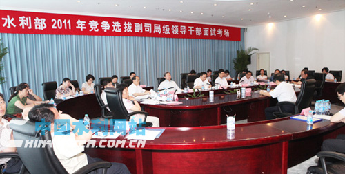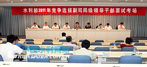 中國水利網(wǎng)站訊 (記者 席晶)7月4日,水利部2011年競爭選拔副司局級領(lǐng)導干部面試在部機關(guān)舉行。水利部部長陳雷,副部長周英、劉寧、李國英分別擔任四個面試考場的主考官。部總規(guī)劃師兼規(guī)劃計劃司司長周學文等32名部機關(guān)和在京直屬單位司局級領(lǐng)導擔任考官。