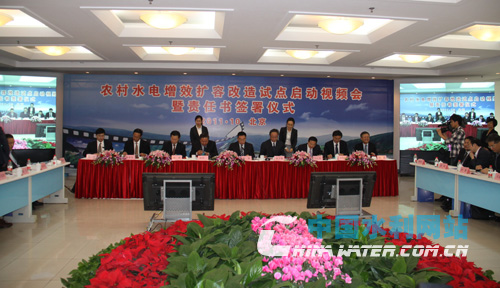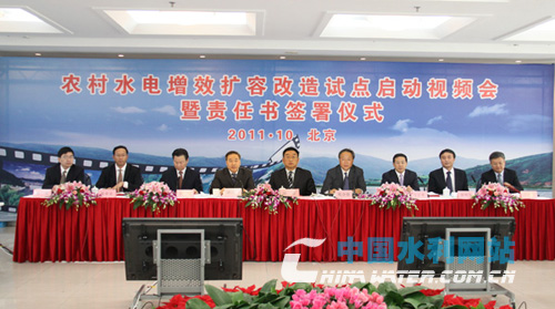 水利部副部長胡四一主持會議并介紹了農村水電增效擴容改造目標任務、試點安排和責任書主要內容。重慶市政府常務副市長馬正其、湖北省政府副省長趙斌、湖南省政府副省長徐明華、廣西壯族自治區(qū)政府副主席陳章良、陜西省政府副省長祝列克、浙江省政府副秘書長陳龍在主會場參加會議并講話。張少春、胡四一分別代表財政部、水利部,與浙江、湖北、湖南、廣西、重慶、陜西6。ㄗ灾螀^(qū)、直轄市)人民政府簽署農村水電增效擴容改造試點責任書。