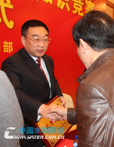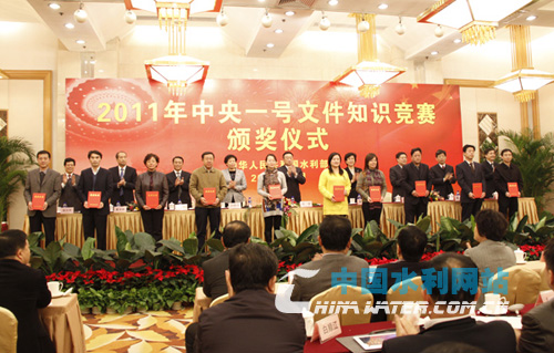 中國水利網(wǎng)站訊(記者 席晶 楊丹丹 通訊員 魏永靜) 11月25日,水利部在京舉行2011年中央1號文件知識競賽頒獎(jiǎng)儀式,歷時(shí)半年多的2011年中央1號文件知識競賽圓滿落幕。水利部部長陳雷、副部長周英出席頒獎(jiǎng)儀式,并為獲獎(jiǎng)單位和個(gè)人頒獎(jiǎng)。頒獎(jiǎng)儀式由周英主持。