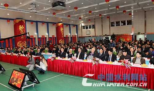 水利部機(jī)關(guān)多功能廳張燈結(jié)彩,從各司局征集的春聯(lián),將會(huì)場(chǎng)裝扮得紅紅火火,喜氣盈盈。陳雷、矯勇、董力、胡四一、劉寧、李國(guó)英等水利部領(lǐng)導(dǎo),與全國(guó)人大財(cái)經(jīng)委員會(huì)副主任委員、水利部原部長(zhǎng)汪恕誠(chéng),全國(guó)政協(xié)委員、水利部原副部長(zhǎng)翟浩輝,水利部老領(lǐng)導(dǎo)楊振懷、黃友若、王繼興、張春園、朱登銓、李昌凡、敬正書、張印忠、綦連安、周保志等親切握手,互致新春?jiǎn)柡颉?br>