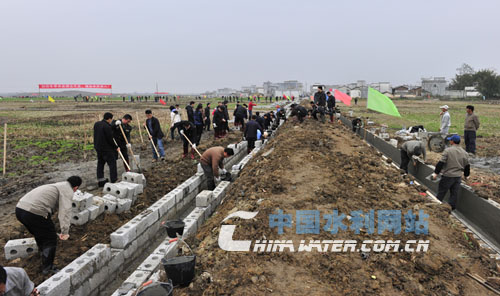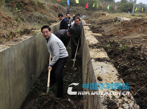1月17日,自治區(qū)主席馬飚趕到南寧市賓陽縣毛里壩灌區(qū)末級渠系節(jié)水改造項目勞動點,跟基層干部群眾一起修砌灌溉渠道。馬飚一邊勞動、一邊詢問農(nóng)田水利建設開展情況。馬飚說,水利是農(nóng)業(yè)的命脈,興水利是強基礎、惠民生、促發(fā)展的重要工作,要抓住全黨、全國上下高度重視水利工作的大好時機,進一步掀起水利建設新高潮,把農(nóng)田水利建設和農(nóng)業(yè)產(chǎn)業(yè)結(jié)構(gòu)調(diào)整結(jié)合起來,充分發(fā)揮水利工程效益。