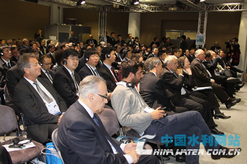 陳雷對(duì)第六屆世界水論壇的隆重舉行和法國出色的組織工作表示祝賀,對(duì)法國作為東道主給予中國代表團(tuán)參會(huì)的大力支持表示感謝。他指出,中國政府非常重視第六屆世界水論壇,派出由水利部、外交部、中國氣象局、住房和城鄉(xiāng)建設(shè)部、農(nóng)業(yè)部等部門組成的中國政府代表團(tuán)出席水論壇,參加部長級(jí)會(huì)議及水論壇有關(guān)活動(dòng)。中國水利部還組織專家代表團(tuán)和企業(yè)代表團(tuán)與會(huì),廣泛、深入、全面地參加水論壇的各項(xiàng)活動(dòng)。