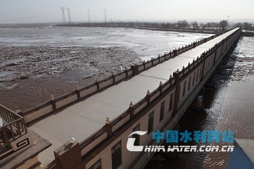 在烏拉特前旗億利大橋察看黃河開河冰凌情況