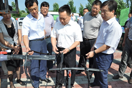 在內(nèi)蒙古赤峰市考察節(jié)水灌溉設(shè)備生產(chǎn)企業(yè)時,李國英認真了解節(jié)水灌溉設(shè)備生產(chǎn)的各個環(huán)節(jié),詳細詢問企業(yè)生產(chǎn)、銷售、管理方面的情況。他指出,東北四省區(qū)大規(guī)模實施高效節(jié)水灌溉存在兩大技術(shù)問題,一是大量玉米秸稈的處理,二是殘余覆膜的回收。希望企業(yè)和相關(guān)科研單位能對此進行科研攻關(guān),解決實際生產(chǎn)中的問題。
