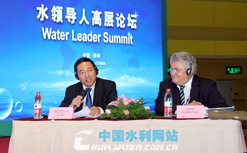 丹麥環(huán)境大臣奧肯,津巴布韋水資源開發(fā)與管理部部長恩科莫,世界水理事會主席福勛,瑞士聯(lián)邦環(huán)境署副署長高茲,匈牙利地方發(fā)展部水利國務(wù)秘書科瓦奇,美國陸軍工程師兵團(tuán)副司令沃什,澳大利亞可持續(xù)發(fā)展、環(huán)境、水與人口社區(qū)部部長伯克,聯(lián)合國秘書長水與衛(wèi)生顧問委員會委員烏朱諾夫,巴西國家水利署署長安德魯?shù)瘸鱿搲l(fā)言。水利部副部長胡四一,聯(lián)合國教科文組織前副總干事、聯(lián)合國教科文組織水教育學(xué)院院長納吉共同主持。水利部副部長李國英、黃河水利委員會主任陳小江、水利部總工程師汪洪、總規(guī)劃師周學(xué)文等出席論壇。