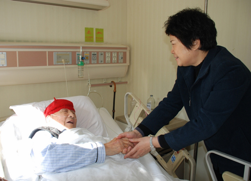 隨后,蔡其華來到中日友好醫(yī)院,看望住院的老領(lǐng)導(dǎo)屈健。蔡其華來到病床前,拉著屈老的手向他表示節(jié)日慰問,并祝屈老健康長壽。她向醫(yī)護人員了解了屈老的身體狀況,囑托他們精心照料好老人。