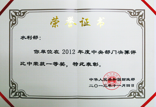 中國水利網(wǎng)站11月28日訊 近日,財政部印發(fā)了《關于2012年度中央部門決算工作考評情況的通報》(財庫函[2013]82號),對2012年度中央部門決算工作先進單位進行了表彰。水利部部門決算工作連續(xù)9年蟬聯(lián)一等獎。陳雷部長對此給予充分肯定,做出重要批示:水利部的決算工作,在財政部的考評中再次被評為先進單位并獲一等獎,值得慶賀!感謝財務司的精心工作!望再接再厲,把預算和決算工作做得更好。