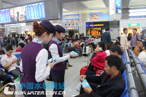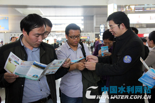 主辦單位在車站候車大廳設(shè)立了節(jié)水宣傳平臺和節(jié)水宣傳易拉寶展示區(qū),通過折頁宣傳材料、生動的漫畫、醒目的標(biāo)語宣傳我國水情、節(jié)水知識、最嚴(yán)格水資源管理制度等內(nèi)容,并通過站內(nèi)LED大屏幕播放節(jié)水公益廣告、活動口號。水利部水資源管理中心、水情教育中心、上海鐵路局的相關(guān)負(fù)責(zé)人和工作人員、志愿者一起向過往旅客發(fā)放節(jié)水宣傳資料,普及節(jié)約用水知識,收集旅客節(jié)水意見反饋單。